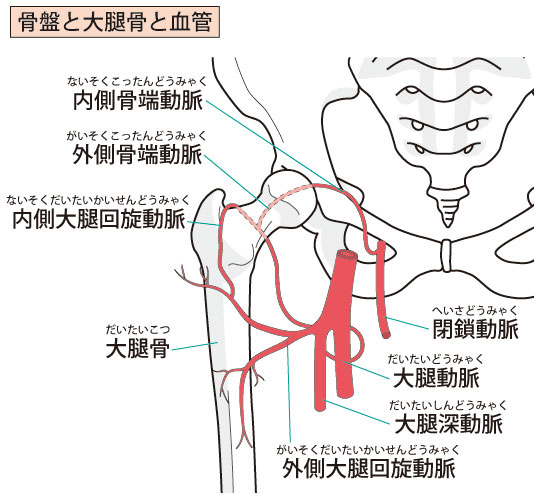お尻や股関節前面には、お尻から太もも・ふくらはぎ・足先に伸びる大きな太い動脈や静脈が通ります。