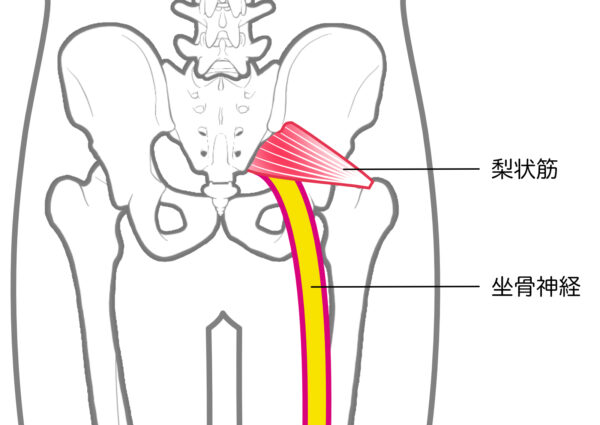 この坐骨神経は、坐骨と坐骨周辺の筋肉やじん帯などの軟部組織の狭い隙間が通路になっています。