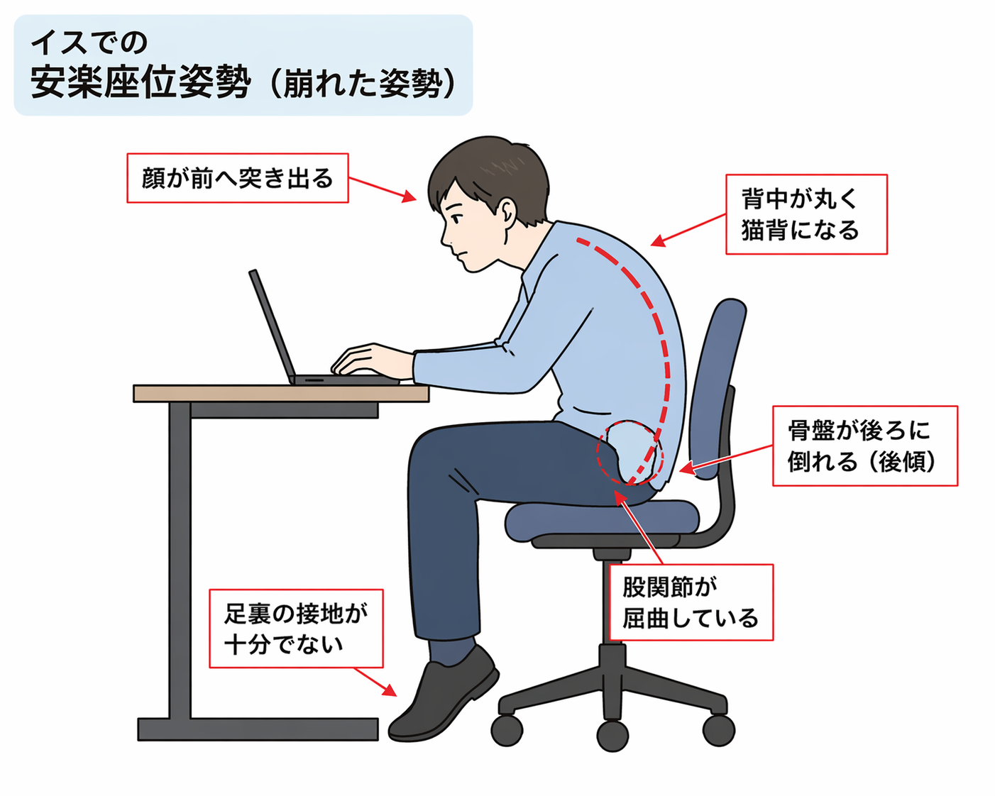 を呼ばれる崩れた姿勢になりがちです。