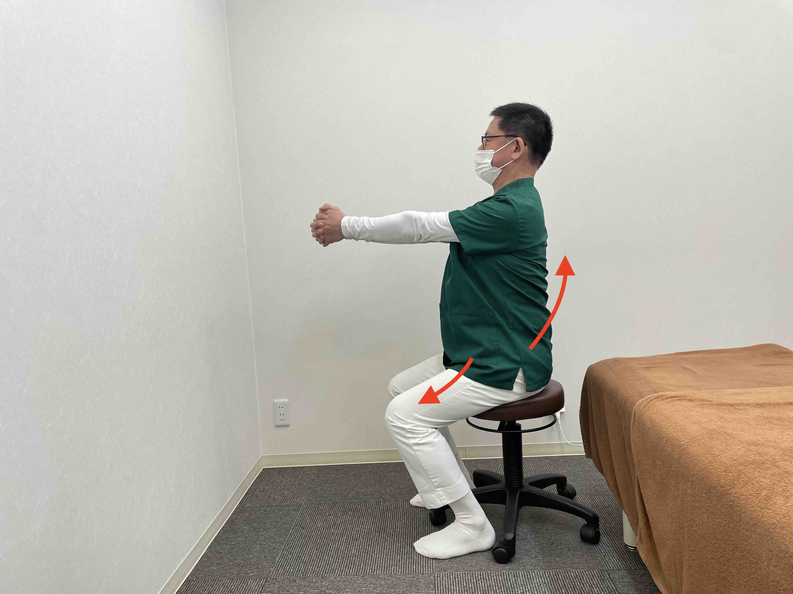 ①イスに座る姿勢を整える