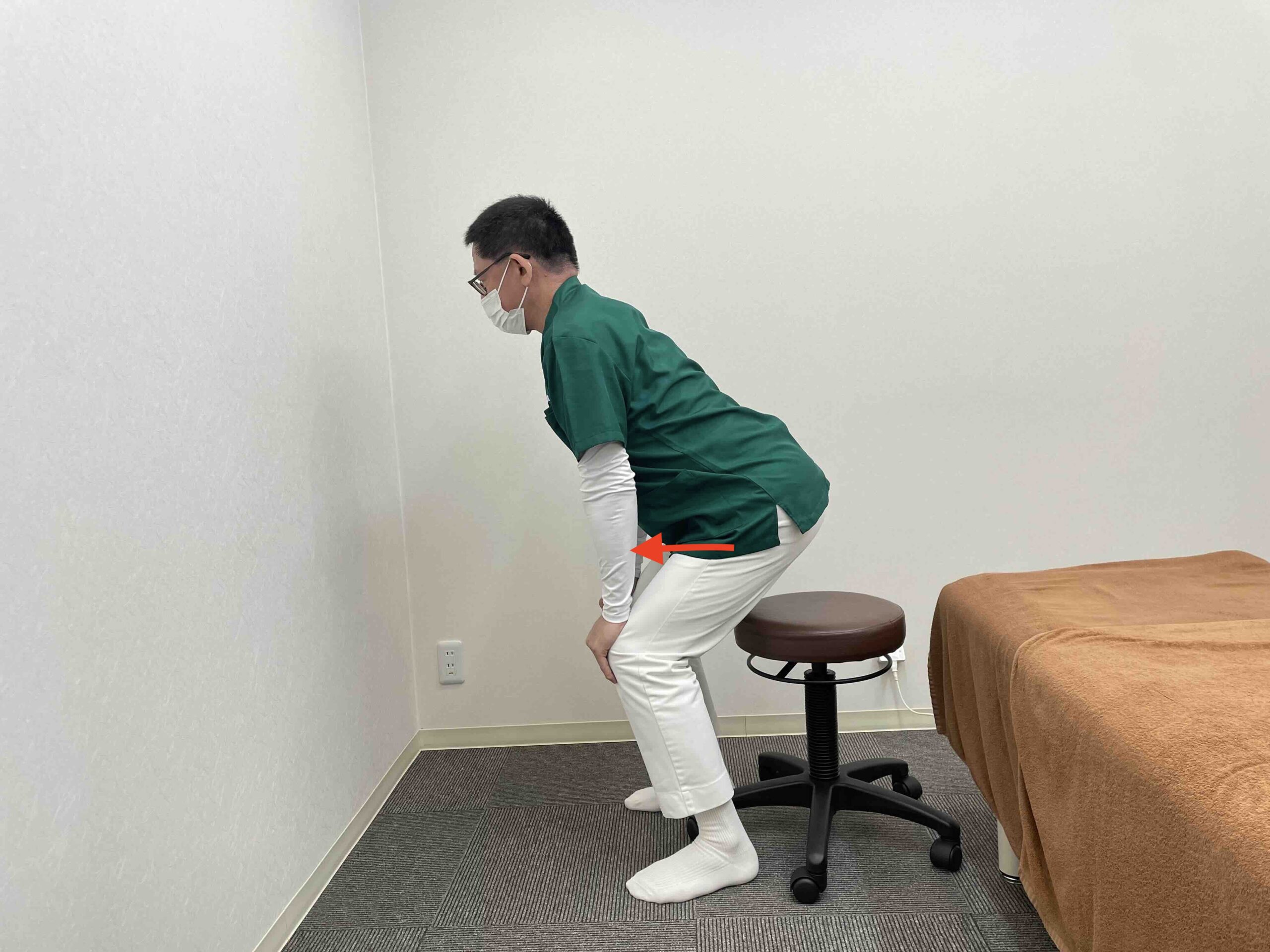 そして、その姿勢の状態のまま、重心を前に移動することで、効率的にイスの座面からお尻が持ち上がり、立ち上がることができます。