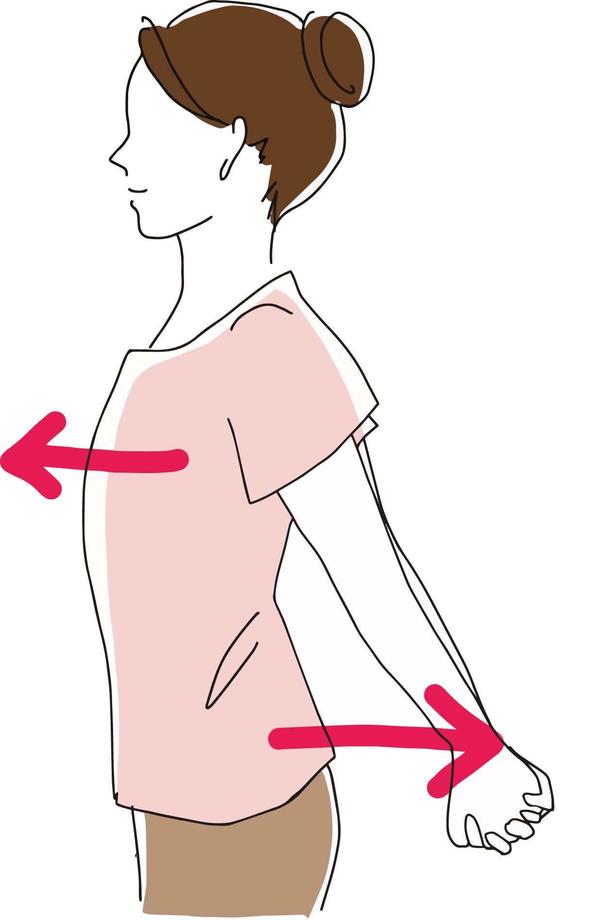 3) 胸から腕が伸びるのを感じたら、5秒間、キープし、ゆっくりと元の位置に戻します。