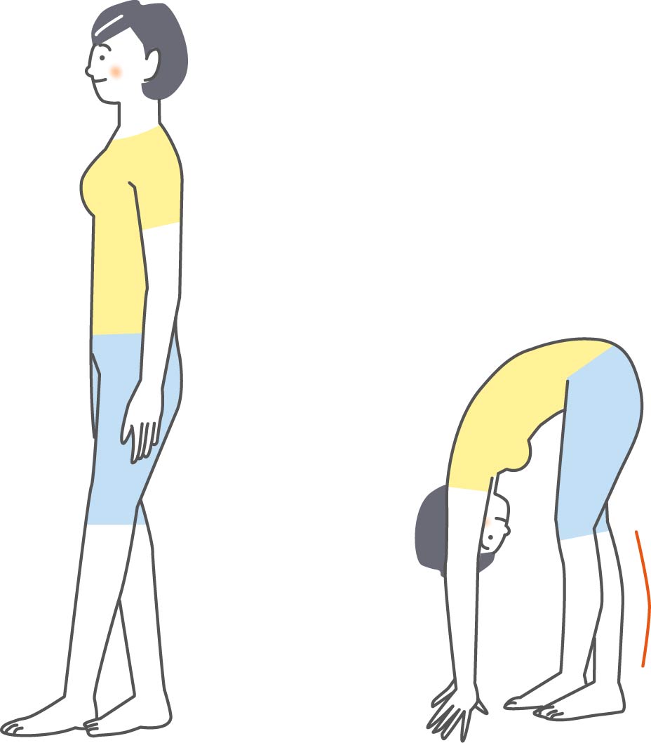 そうすると、腰に負担が集中するため、腰を曲げる角度を減らす動作が有効です。