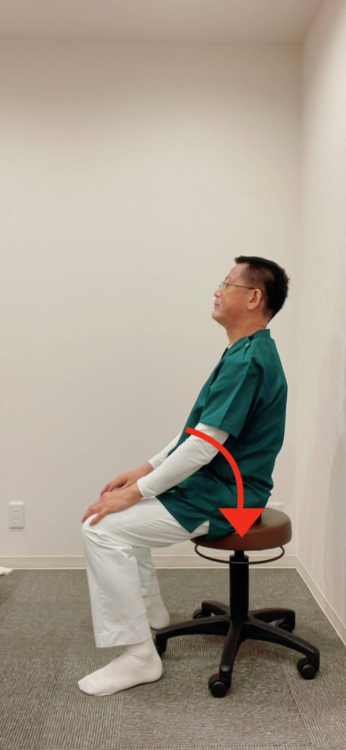 ですので、体を前に倒して軽くお尻を持ち上げ、尻餅をつく要領でお尻を椅子の座面に落としてください。