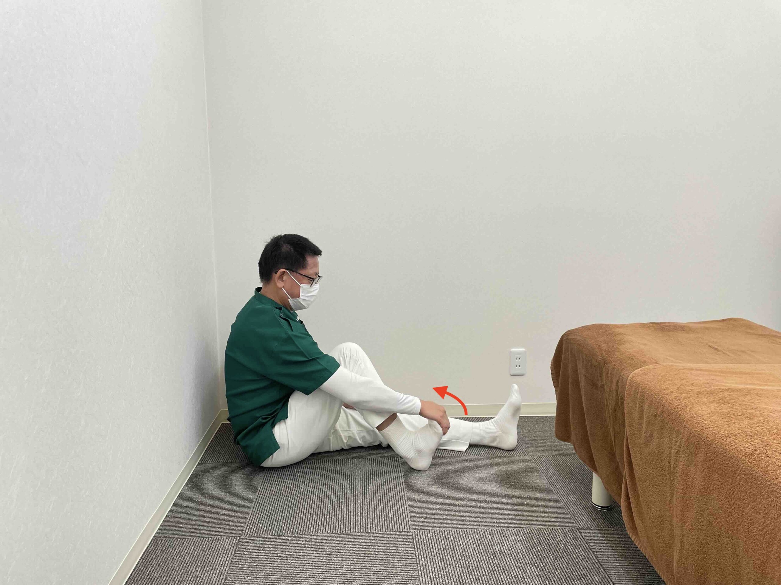 そうすると、足首をつま先を引き上げるように曲げる関節の動きをする際に、足首の前面につまり感を感じて、足首が曲げにくい現象が起こります。